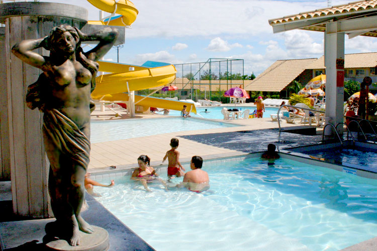 05 PISCINAS TERMAIS, 01 PISCINA TERMAL COBERTA, 01 CASCATA, 01 PISCINA DE HIDROMASSAGEM, 02 TOBOÁGUAS, 01 SAUNA NATURAL, 01 SAUNA A VAPOR, 01 BAR MOLHADO, RECREAÇÃO MONITORADA.